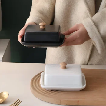 Nordic Ceramic Rectangular Butter Dish with Lid – Elegant Cheese & Snack Plate