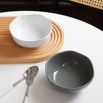 Asymmetrical Ceramic Bowl – Minimalist Solid Color Dinner & Fruit Bowl