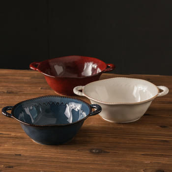 Retro Ceramic Double-Eared Dinner Bowl – 1.2 QT Large Capacity