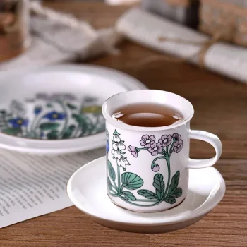 French Retro Ceramic Coffee Mug & Saucer Set – Elegant Teacup for Home