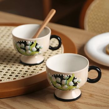 Hand Painted Lily of the Valley Ceramic Coffee Cup – Eco-Friendly Floral Tea Mug