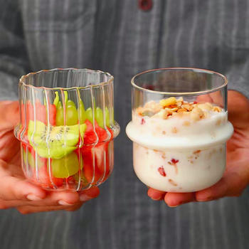 Striped Heat Resistant Glass Cups for Coffee, Tea, Juice & More