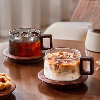Glass Coffee Mug with Walnut Handle – 3oz Heat-Resistant Small Cup