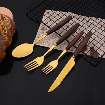 Luxury Gold Stainless Steel Cutlery Set with Imitation Wooden Handles