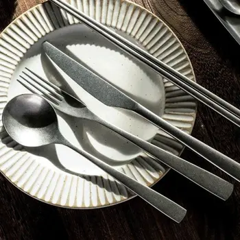 Vintage Silver Matte Stainless Steel Cutlery Set – Knife, Fork & Spoon