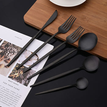 6-Piece Black Matte Stainless Steel Cutlery Set – Elegant Flatware for Modern Dining