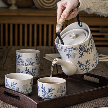 Japanese Retro Ceramic Tea Set with Bamboo Handle
