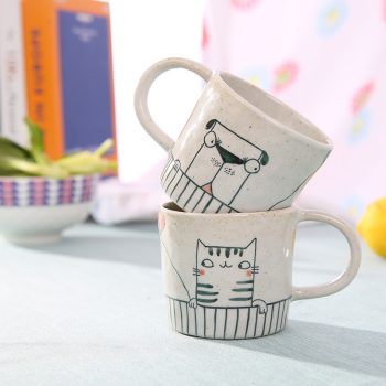 Korean Hand-Painted Cat & Dog Ceramic Mug – Cute Cartoon Coffee Cup