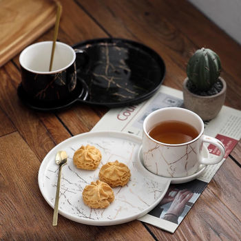Elegant 200ML Marble Ceramic Coffee Cup & Saucer Set – Black & White Tea Mug