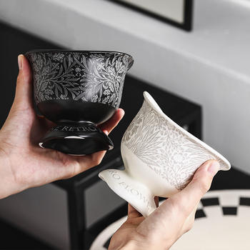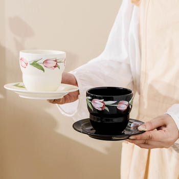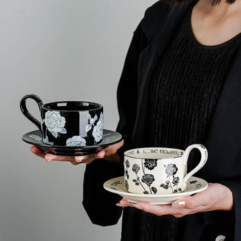 Black Rose Ceramic Latte Mug Set with Saucer – Vintage Home Coffee Cups