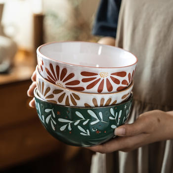 Vintage Floral Ceramic Bowl Set – Round Salad, Noodle & Soup Bowls
