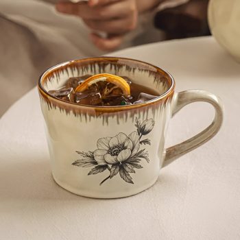 Vintage Glaze Relief Flower Ceramic Coffee Cup Set – Handmade Tea & Latte Mug