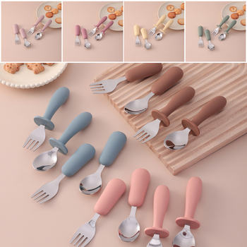 Silicone Baby Training Spoon and Fork Set – Infant Self Feeding Cutlery