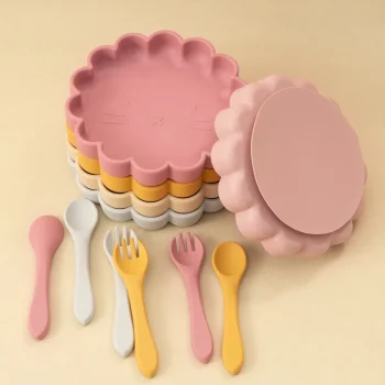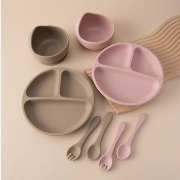 Baby Silicone Feeding Set with Suction Plate, Bowl, Spoon & Fork