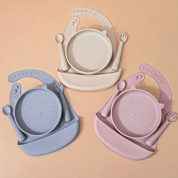 4-Piece Silicone Baby Feeding Set with Suction Plate & Bib