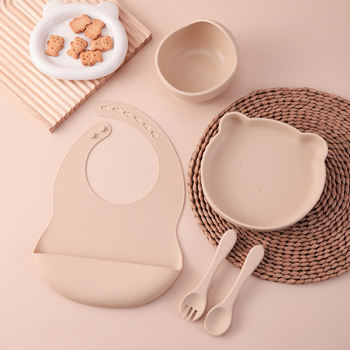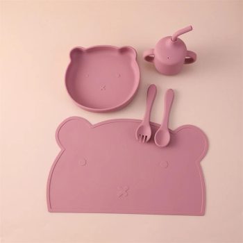 5PCS Silicone Baby Feeding Set with Bear Design