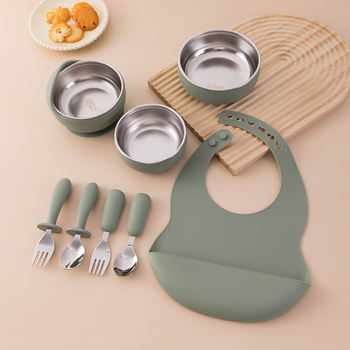 8-Piece Stainless Steel & Silicone Baby Feeding Set for Easy Weaning