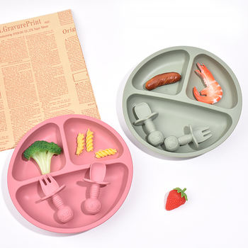 Baby Silicone Suction Plate Cartoon Toddler Feeding Dish Training Tableware