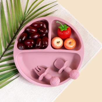 3PCS Baby Silicone Tableware Set with Suction Plate, Spoon & Fork