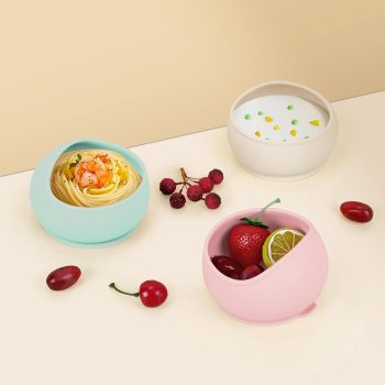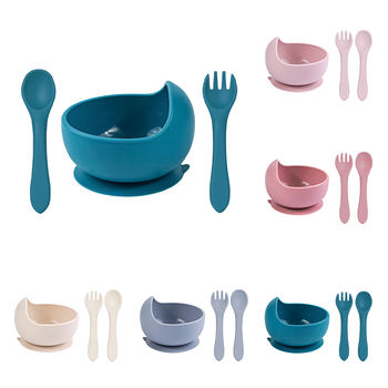 3-Piece Silicone Baby Feeding Set with Suction Bowl and Training Utensils