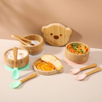 Baby Bamboo Feeding Set with Silicone Suction – Toddler Tableware Kit