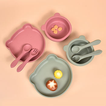 Silicone Baby Suction Bowl Set – Cute Bear Training Dinnerware for Toddlers