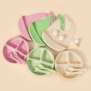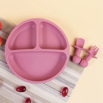3pcs Baby Silicone Suction Feeding Set with Spoon, Fork & Divided Plate