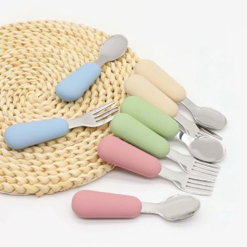Silicone Baby Feeding Spoon & Fork Set – Easy Grip Stainless Steel