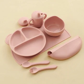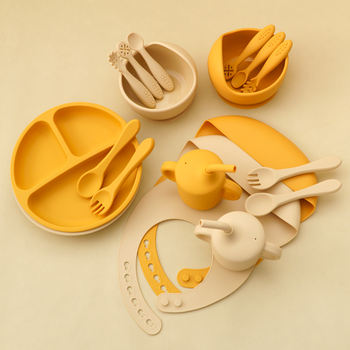 9-Piece Silicone Baby Feeding Set with Suction Plate, Bowl & Sippy Cup