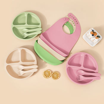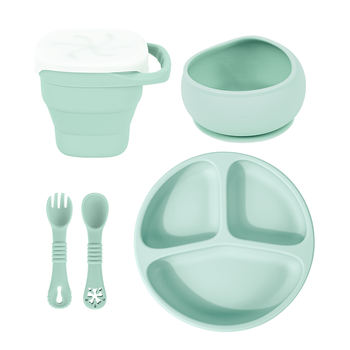 5pcs Silicone Baby Feeding Set with Suction Plate, Bowl, Spoon, Fork & Snack Cup