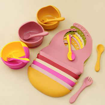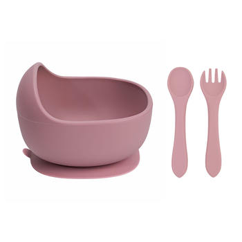 3pcs Silicone Baby Feeding Bowl Set with Training Spoon and Fork
