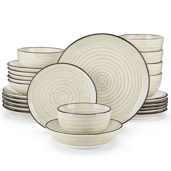 24-Piece Beige Ceramic Dinnerware Set with Handpainted Spiral Design