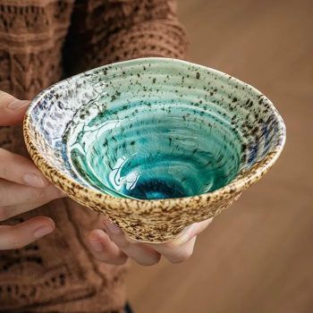 Color-Block Ice-Crack Glaze 5.5″ Irregular Ceramic Dessert Bowl