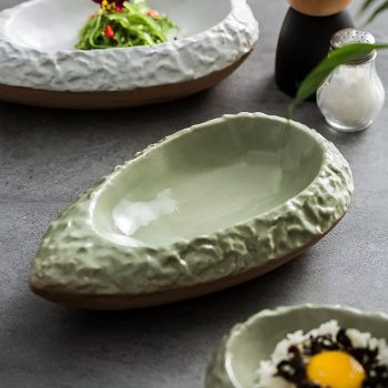 Japanese Sashimi Boat-Shaped Ceramic Plate for One Portion – Elegant Restaurant-Style Plating