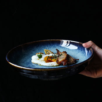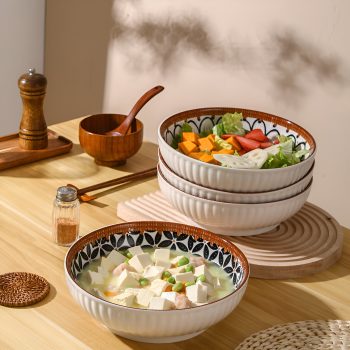 9-Inch Handmade Japanese Ceramic Soup Bowl – Large Capacity Retro Tableware