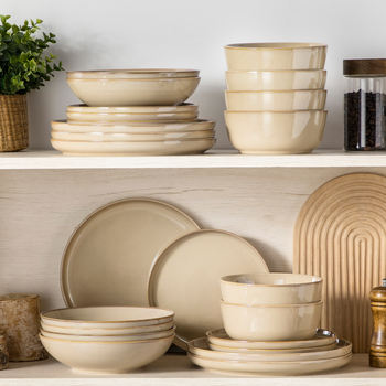 Light-Brown Reactive Glaze Stoneware Dinnerware Set – 16 Pieces