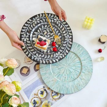 Luxury Iridescent Shell Placemats – Handmade Nordic Round Decorative Tray