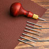 But the innovation continues with the ergonomic wood handle that fits comfortably in your hand. The natural wood grain provides a secure grip that reduces hand fatigue during long crafting sessions. At approximately 5-6 inches long, it offers the perfect balance between control and leverage, making it easy to punch through multiple layers of leather without excessive force.