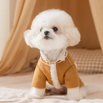 Plush Leather Pet Winter Jacket – Warm Four-Legged Coat for Small Dogs & Cats