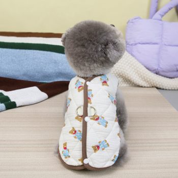 Cozy Bear Print Dog Vest with Bow Tie Button-Up Winter Jacket