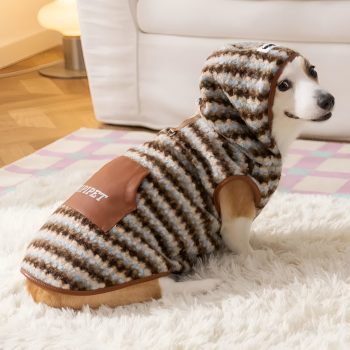 Striped Fleece Hooded Dog Coat for Medium Dogs
