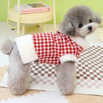 Plaid Dog Jacket with Fur Collar – Warm Puppy Vest Coat