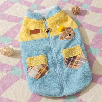 Winter Color-Block Dog Vest with Bear Patch