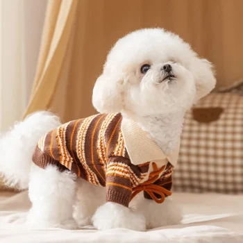 Retro Striped Dog Sweater Warm Knit Pullover for Small Dogs