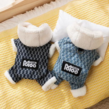 Cozy Checkered Color-Block Dog Jumpsuit for Autumn & Winter