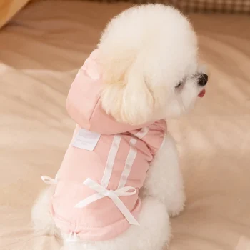 Cute Bow Winter Dog Jacket with Hoodie and D-Ring