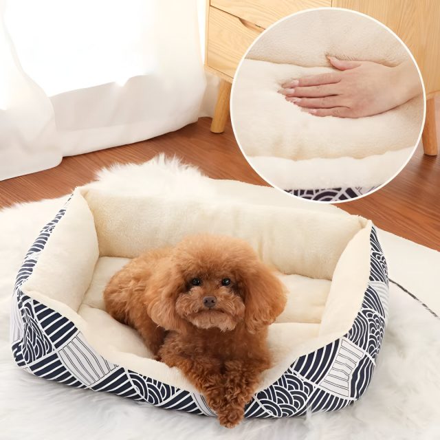 Give your pet a cozy space they’ll love coming back to every day. This plush square dog and cat bed is designed to provide warmth, comfort, and support for medium dogs and large cats alike. With its soft cotton surface and sofa-style shape, it creates a safe and calming nest where pets can curl up, stretch out, or enjoy a peaceful nap. Whether placed in the living room, bedroom, or a quiet corner, this bed blends comfort with everyday practicality.