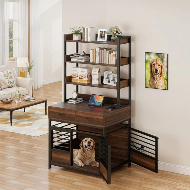 This dog crate isn’t just a pet accessory — it’s a piece of furniture that enhances your home’s look and function. Whether you need a secure haven for your dog, a stylish shelving unit, or both, this multi-purpose kennel does it all. Designed for comfort, safety, and modern living, it’s the ideal choice for pet owners who want to keep things tidy without sacrificing style.