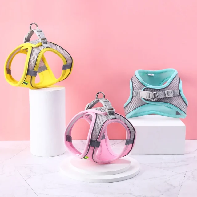 This harness features a soft, cushioned “candy sandwich” design that hugs your dog gently while giving you full control. The quick-release buckle allows fast on-and-off use, and the reflective detailing adds extra safety during evening strolls. The included 59-inch leash provides the perfect walking length. Available in three fresh colors—lemon yellow, mint green, and cherry blossom pink—it keeps your pup looking adorable while staying secure.