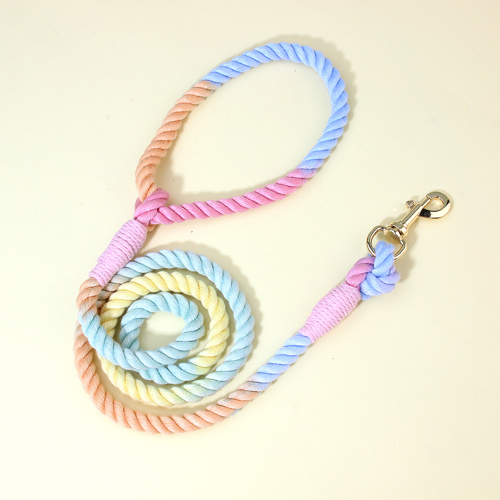 Unlike ordinary leashes, this one blends practicality with style. The hand-woven gradient pattern adds a fashionable touch, while the cotton rope construction ensures both comfort and strength. Whether you’re training your pup, taking an energetic dog for a jog, or simply enjoying a calm walk in the park, this leash adapts to your needs.